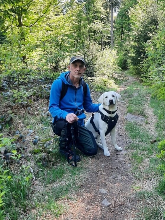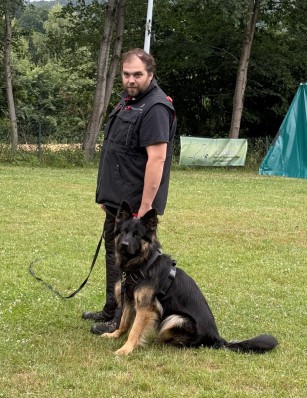 mit seinem Altdeutschen Schäferhund "Lasko"